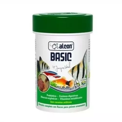 Alcon Basic é um alimento completo para peixes ornamentais, que combina uma grande variedade de ingredientes naturais selecionados. Não contém corantes artificiais, o que representa mais saúde para os peixes e água mais cristalina. Seus atrativos e consistentes flocos MEP 200 Complex resultam de modernas técnicas biotecnológicas de nutrição, com os destaques: Prebiótico: Estimula a resposta imunológica, aumentando a resistência às doenças. Enzimas digestivas: Melhoram a eficiência no aproveitamento dos nutrientes, com redução de resíduos. Aumentam a energia metabolizável. Minerais orgânicos quelatados: Maior biodisponibilidade dos nutrientes minerais ao organismo dos peixes. Vitaminas estabilizadas, como a vitamina C protegida, reforçam as defesas, assim como o ácido graxo polinsaturado Ômega 3, proveniente dos componentes naturais do ambiente marinho.