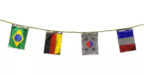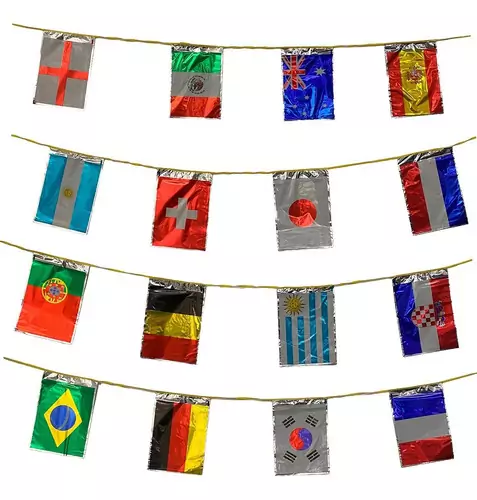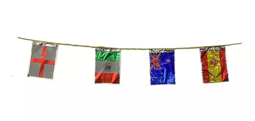 Itens inclusos: 1 cordão com 10 metros de bandeiras metalizadas países