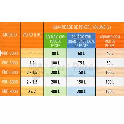 PRO-3000: potência de 3,5 watts,* capacidade de 1,2 litros/minuto. 1 saída de ar.