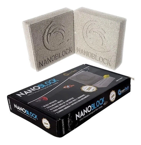 Cada bloco de Nano Block Oceantech tem uma área de 1.080 m² e trata até 1400 litros de água. Nano Block OceanTech é ideal para uso em filtros Hang On, canister, filtro de lago, sumps e em sistema Dry Wet. Para acelerar a colonização e resultados mais rápidos recomendamos o uso em conjunto com os os produtos biológicos da OceanTech Overnite e OceanBlend.