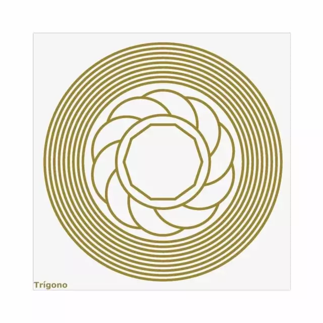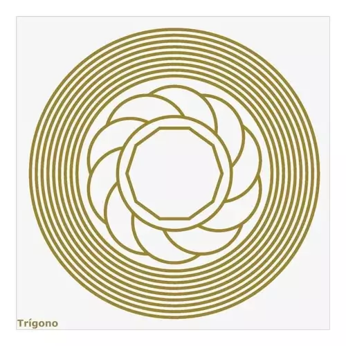 Gráfico formado por um decágono (potencializador de energia), um turbilhão (força desenvolvida para penetrar as camadas do inconsciente) e os nove círculos (protetor de energias sutis). Utilizamos o trigono para pedidos de saúde, prosperidade, proteção nos negócios, proteção para viagens e para eliminar dores. Em casos de proteção em viagens colocá-lo dentro da bagagem, encostando na parte interna das malas, já nos casos de eliminar dores colocá-lo na cama, embaixo do lençol, na direção onde se localiza a dor. Nos trabalhos normais, colocamos o pedido no centro do trígono, em cima o testemunho e por último se necessário o nome do remédio, uma pedra, uma cor, o número da cura, etc.