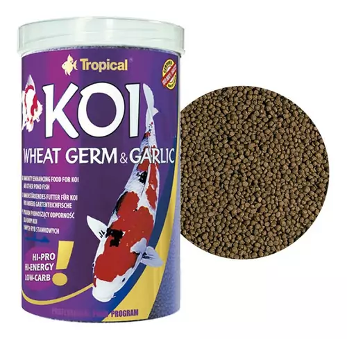 ALIMENTO PARA PEIXES DE AGUA FRIA COMO KINGUIOS E CARPAS. KOI WHEAT GERM & GARLIC Alimento para aumentar a resistência da Carpa Koi e outros peixes de lago.